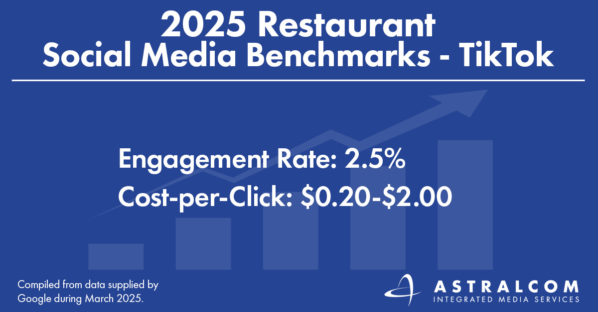 We want to know how your social media performance compares. To find this data, marketers can access detailed analytics within a platform’s ad manager (e.g., Facebook Insights, Instagram Analytics, LinkedIn Campaign Manager, etc.). By reviewing key metrics such as engagement rate and cost-per-click, restaurant marketers can set new, more ambitious goals, adjust targeting, and optimize content for better results across each platform. If your numbers fall short, you’ll know it’s time to change your creative, your messaging, and/or your timing. The team at ASTRALCOM can help you find the perfect blend of campaigns to shine on social.